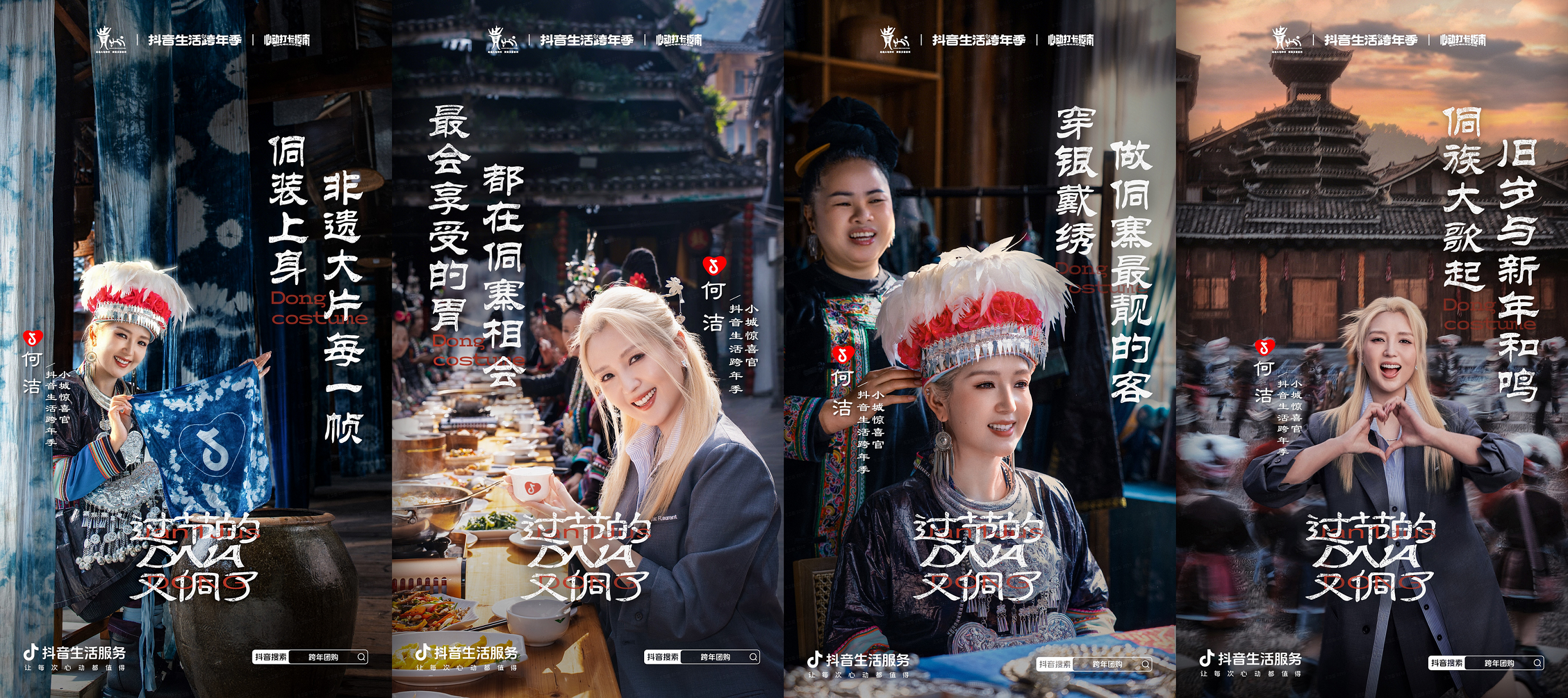 在侗寨过节,到处都是令人心“侗”的场景。抖音生活跨年季携手何洁拍摄一组民族风海报,记录下在侗寨的趣味体验:华丽银饰与精致绣衣加身,瞬间化身靓丽的侗族姑娘;换上侗族盛装,尝试古法扎染,随手展开就能成就非遗大片;加入长桌宴,在沸腾的热气里收获相聚的欢乐;在鼓楼前聆听侗族大歌,感受大山交响的自然律动……这是侗寨里真实可触的日常,更是抵达就能拥有的同款心动时刻!